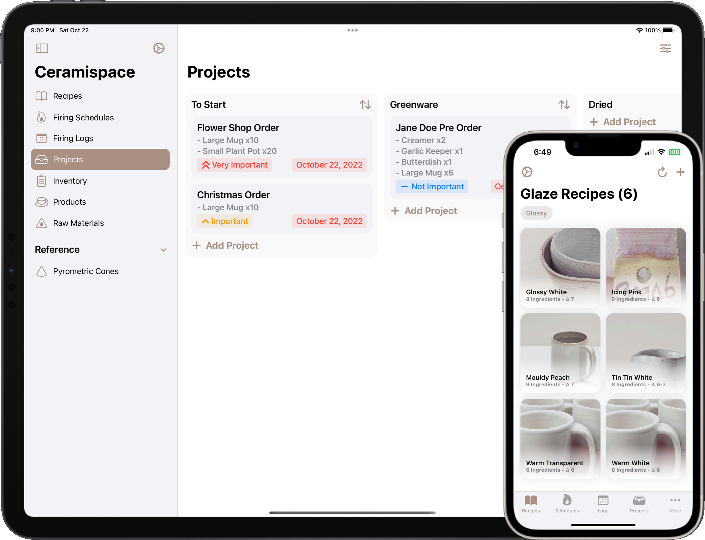 Join ceramic artists who are managing their studio with Ceramispace — free to download on iPhone, iPad, and Mac.